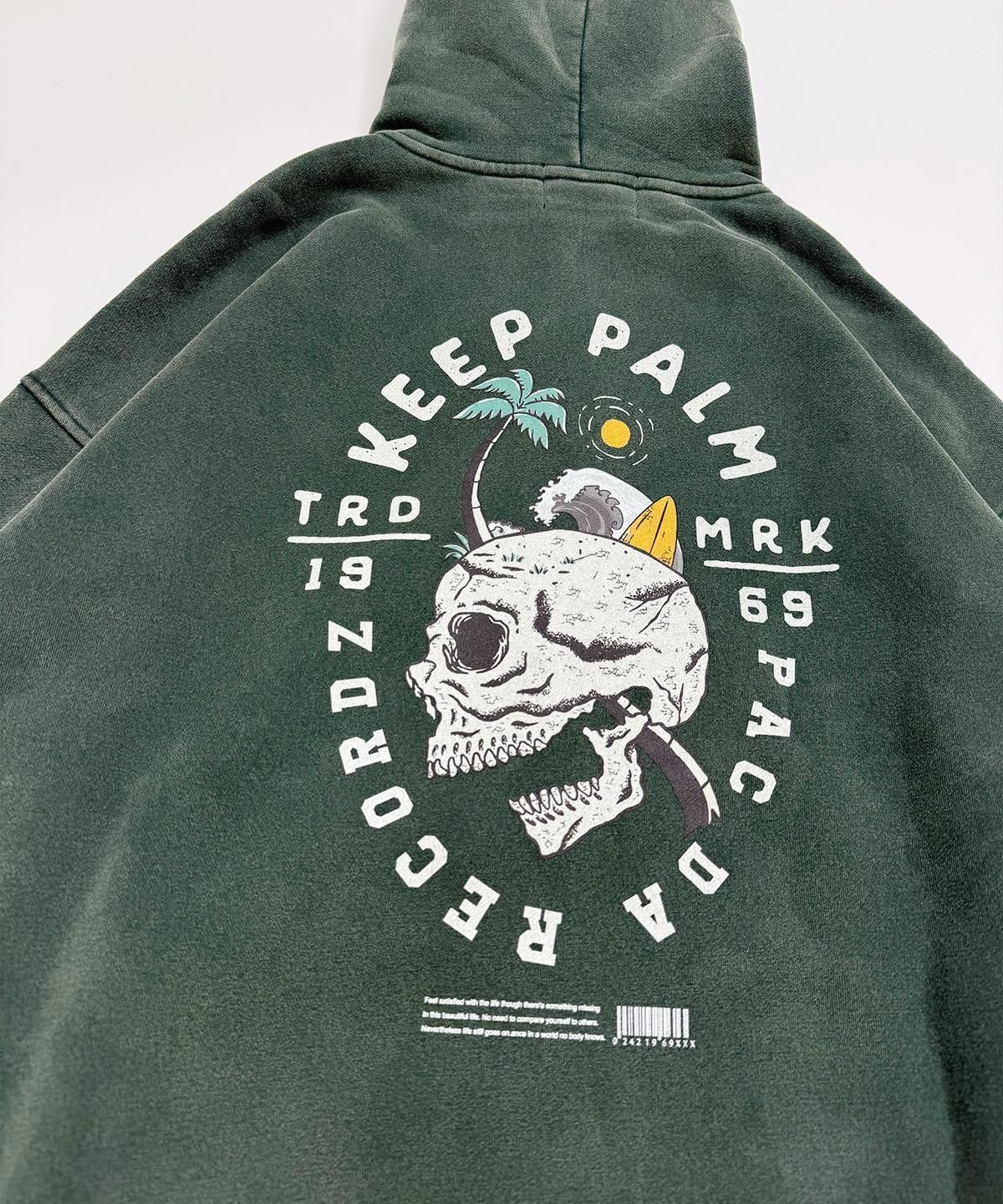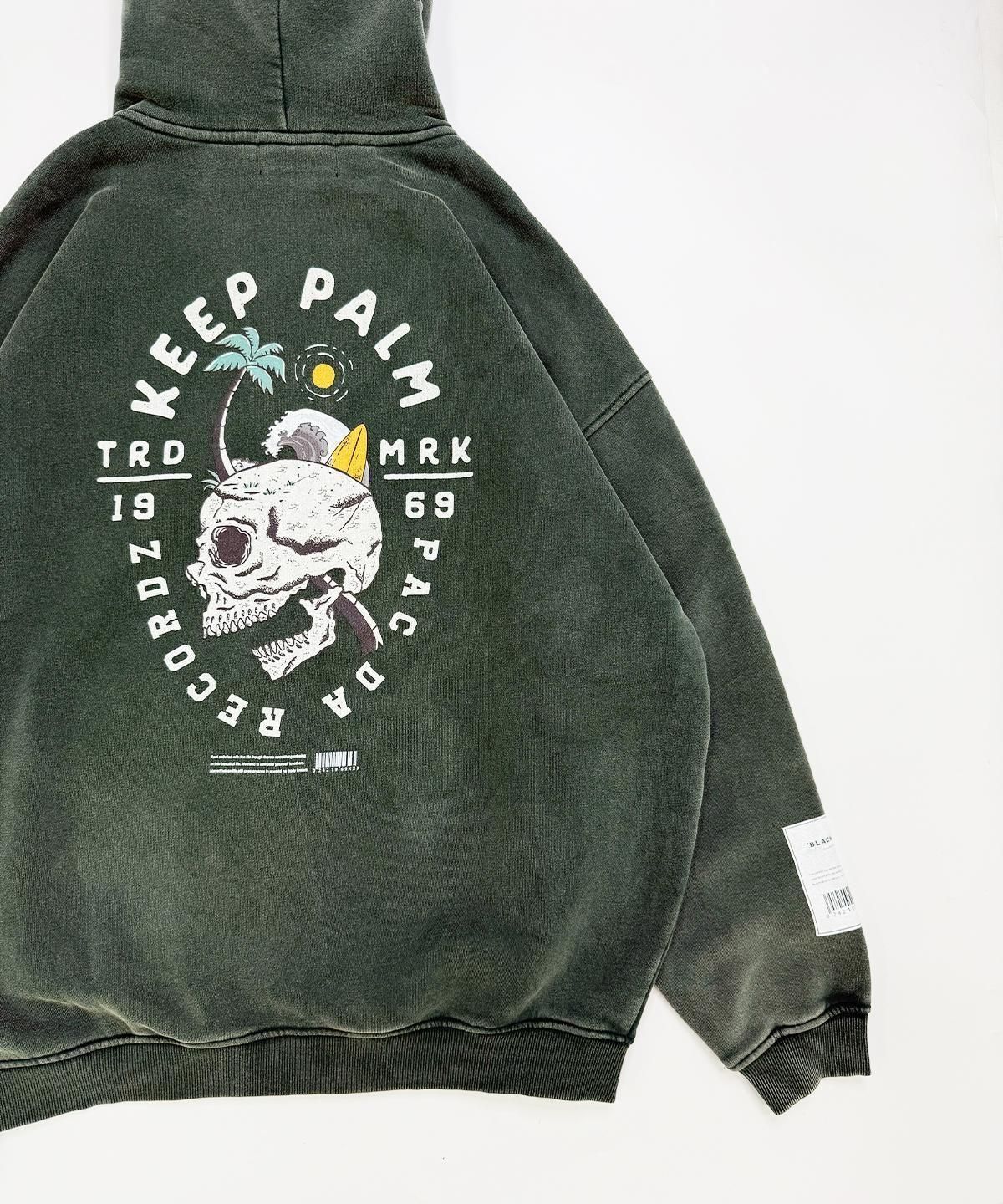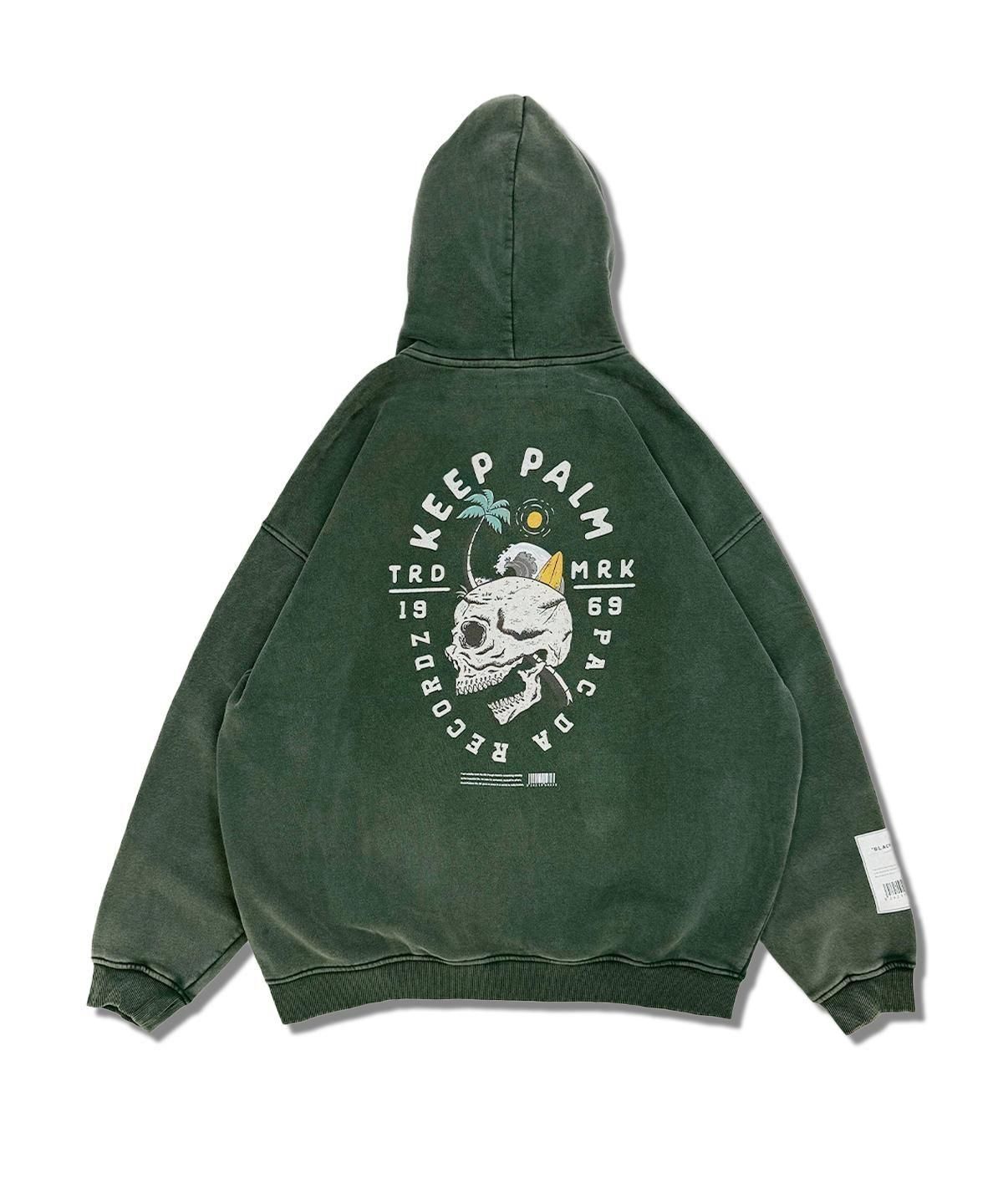 【BLACK×BOX25AW最新作】BLACK×BOX KEEP PALM VINTAGE HOODIE.VINTAGEGREEN