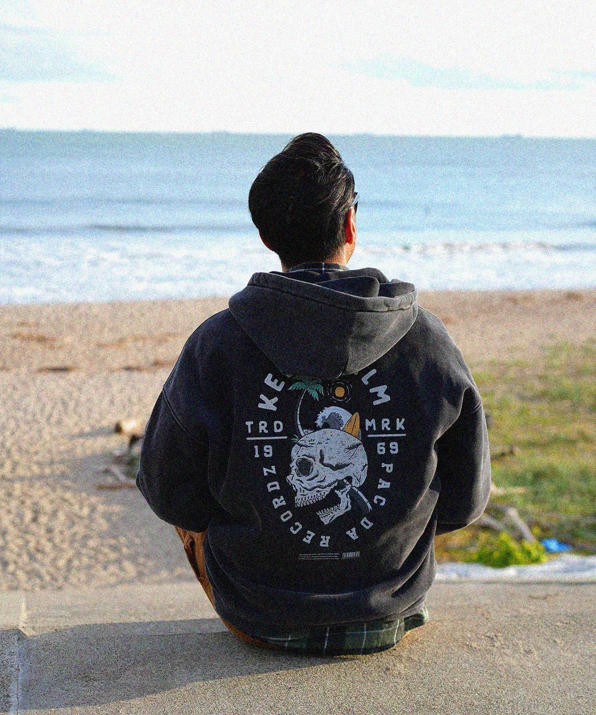 今季初となるパーカーはVINTAGE加工された肉厚なZIP仕様でバックはグラフィックが映えるデザイン。