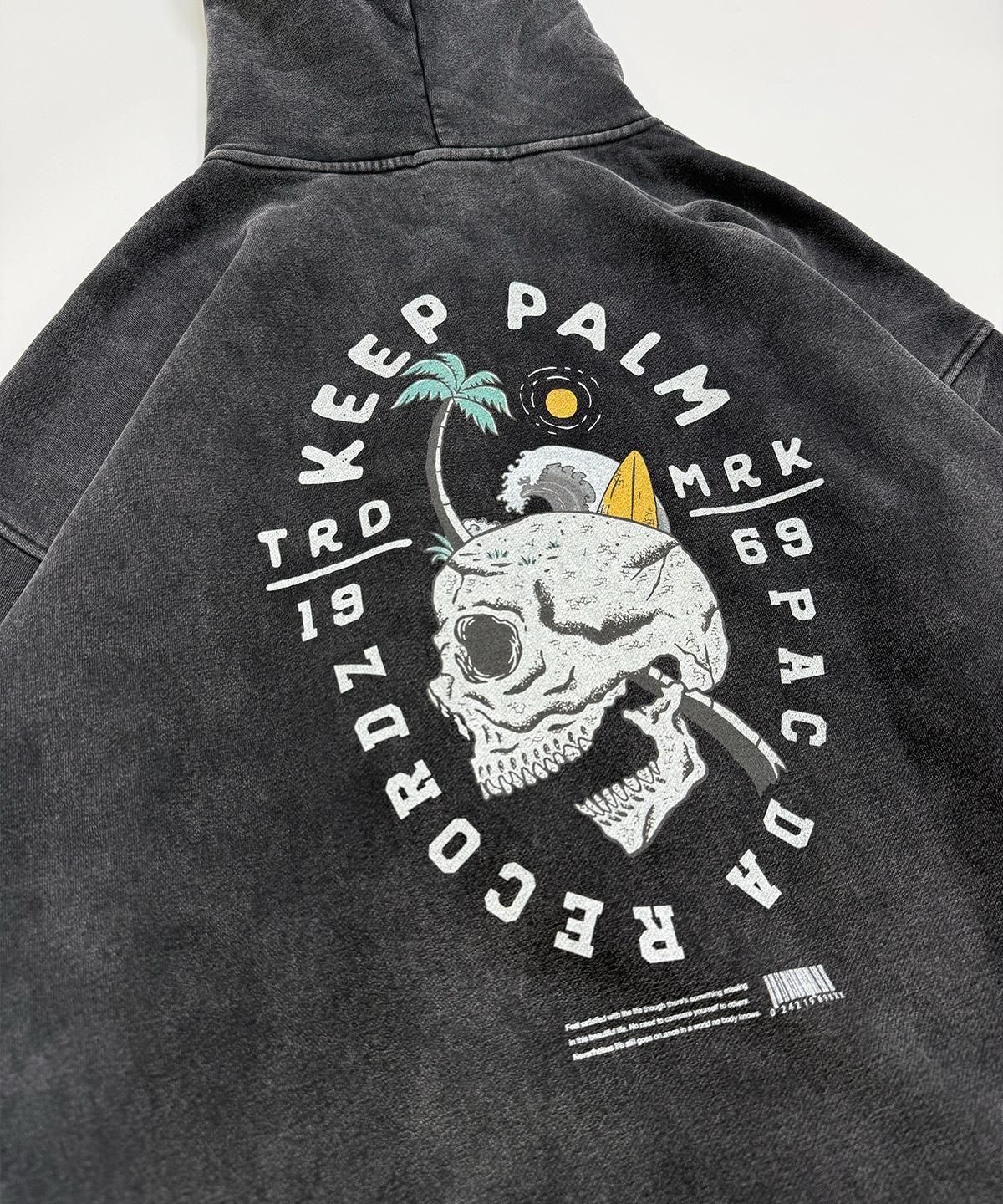 今季初となるパーカーはVINTAGE加工された肉厚なZIP仕様でバックはグラフィックが映えるデザイン。