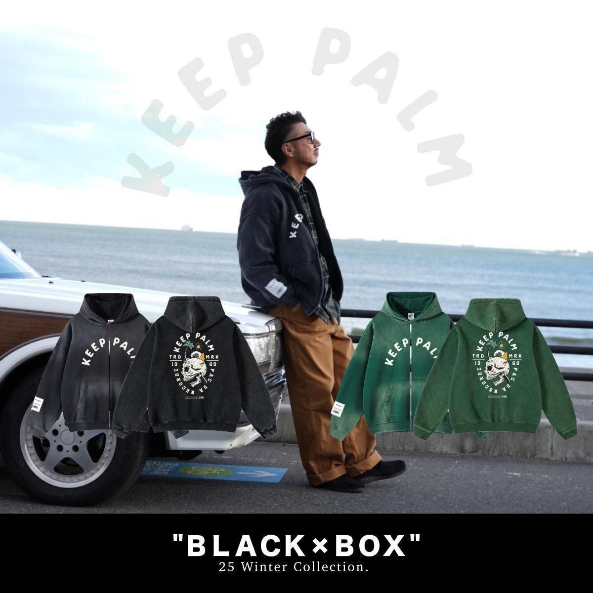 【BLACK×BOX25AW最新作】BLACK×BOX KEEP PALM VINTAGE HOODIE.VINTAGEBLK